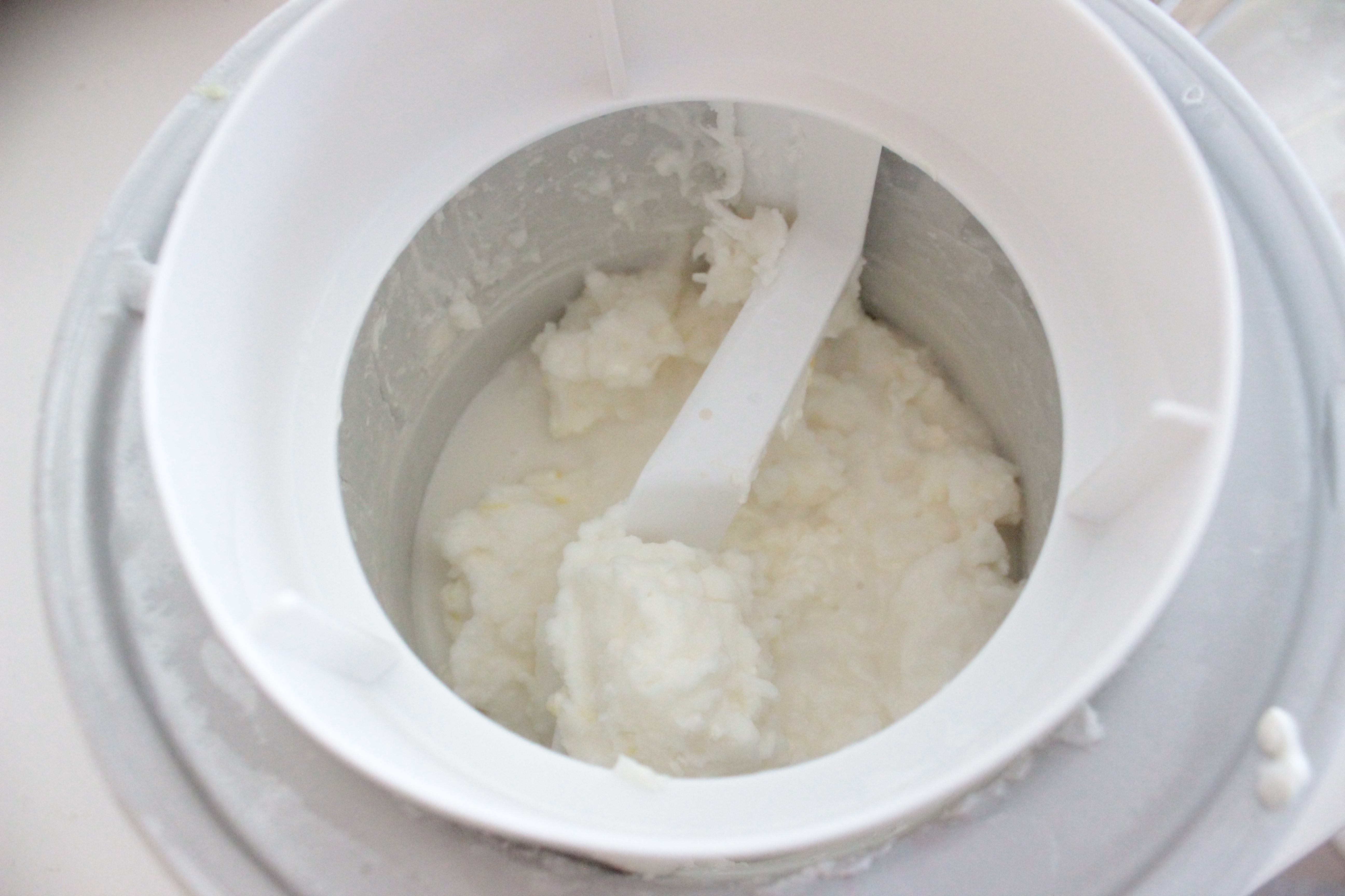 Blueberry-olive oil friand, lemon curd, mascarpone sorbet
