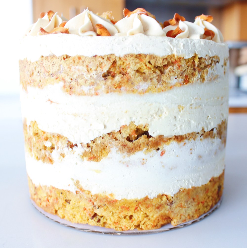 When it comes to carrot cake, I really love making them with a TON of grated carrots in them. While the concept of putting a root vegetable into a cake sounds a bit weird, that’s what the sugar and spices are for. It hides any savory notes of the vegetable and results in a cake that is aromatic from the spices but moist from the fibers in the vegetable of your choice. A common misconception with making carrot cake batter is that it is basically vanilla cake batter with a handful of grated carrots in it. That to me is not carrot cake. That is just vanilla cake with a handful of grated carrots. For me, carrot cake is decadent, dense, super moist, and almost fudgy in texture, but still yielding a crumb when you cut or bite into it. It is jam-packed with a lot of shredded carrots, making it so that the flavor of carrot is unavoidable – I always use as much carrot as I do flour in the making of my carrot cake batter.