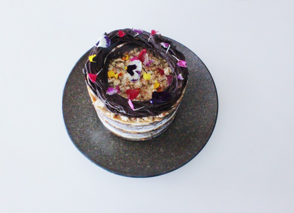 For this recipe, I decided to take that deconstructed plated chocolate cake, and using my Milkbar experience, transform it into an entire layer cake. Specific modifications to the original recipe, include introducing an Ovaltine soak for the cake, slightly modifying the mascarpone and ganache recipes, and changing the twigs into a nest to rest on top of the cake. The proportions of the cake and crumble are also larger in quantity than the original too(I made about 1/3 amount of cake batter for my audition dish since I did not need a terribly large amount of cake for that), and I made about half the crumble that I did below. For the changes to the mascarpone, I added the option between malted milk powder or Ovaltine(the original used malted milk powder), and the inclusion of water. Since mascarpone can split very easily, the addition of water helps the mascarpone stay more pliable and spreadable, which are important things for a layer cake. For the ganache, I included the option to use either malted milk powder or Ovaltine – the original ganache also used malted milk powder, but Ovaltine works here perfectly fine. With all of those changes, this counts as an entirely different recipe, but this post is basically two recipes for one the price of one, since you know how I changed the original! Either make the layer cake, or plate it up! That’s the fun of cooking!