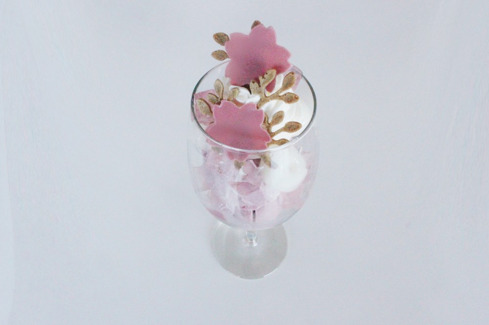 I love Japanese styled parfait. American parfaits tend to just be fruit, yogurt, and granola, and while that’s all fine and dandy, Japanese parfaits just beat their American counterparts by a landslide. They usually contain cookies, ice cream, cream, jellies, fruit, cake, just everything unhealthy for you, but in one tall glass, and decoratively arranged. It’s honestly a artform. I wanted to make my own take on a parfait, using cherry blossoms as my inspiration, in honor of 花見(Hanami or flower viewing), a time of the year when cherry blossoms or sakura bloom to commemorate the start of new beginnings. For this parfait, we have cherry blossom and ruby chocolate ice cream, a cherry blossom gelee, ruby chocolate tuiles, shiratama dango(soft poached mochi), and fresh cream to top it all off. This would be a parfait I would be glad to order(and be shamed and judged by the waitstaff for ordering because apparently parfaits are considered a “girly” thing and it is frowned upon for men to order them in Japanese culture, which I find to be some hot bullshit).