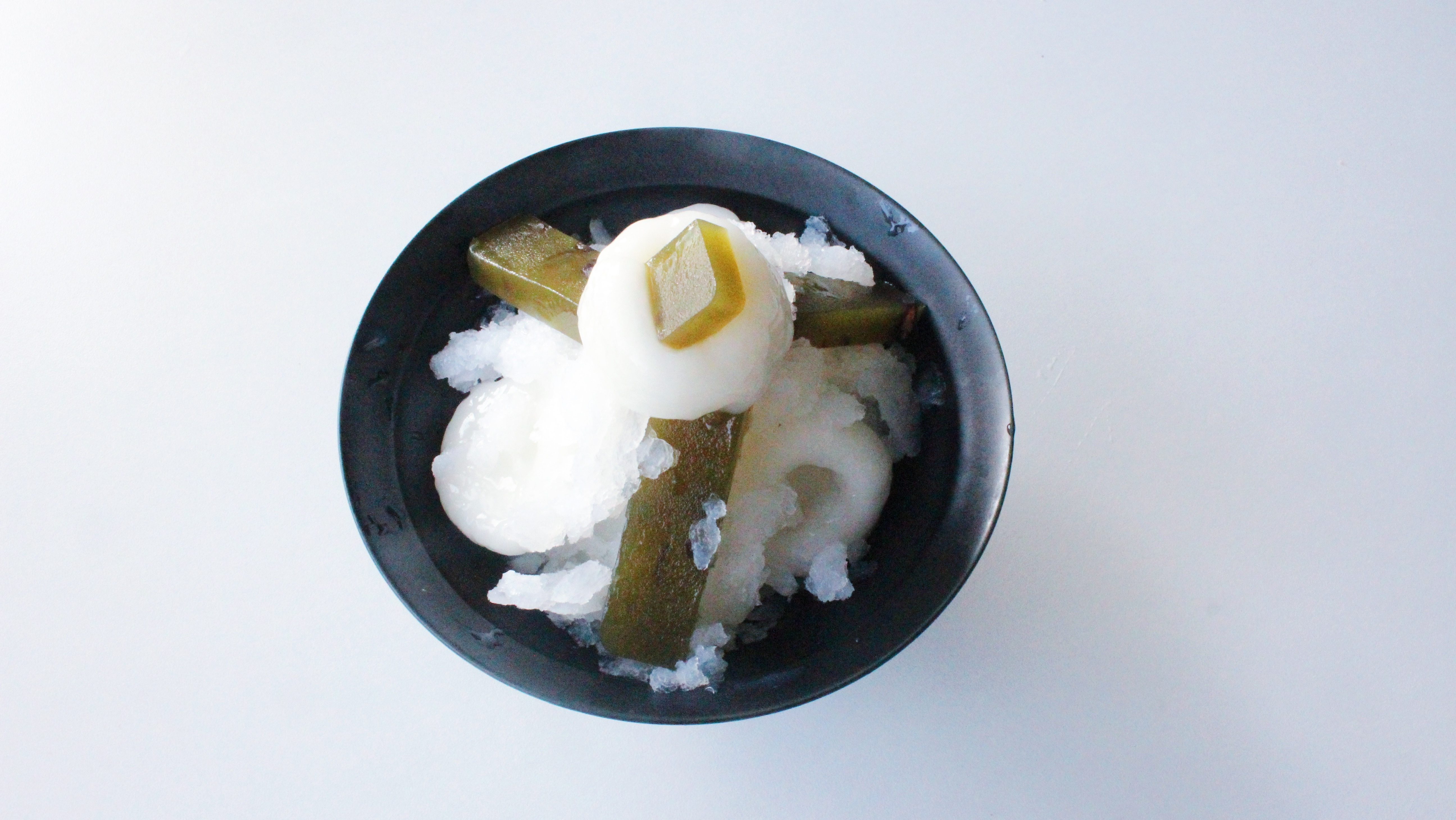 Spoon on the Calpico shaved ice, and alternate with layers of the dango and the red bean paste or youkan. Serve immediately, or wait and you’ll still have Calpico water to drink!