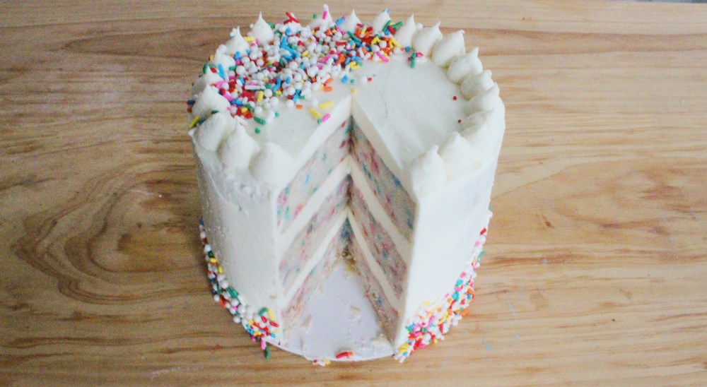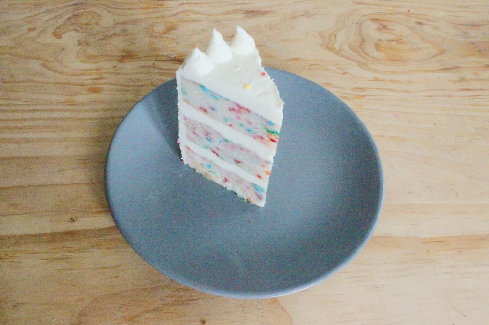 I will be honest. I never grew up on funfetti cake. My Buddhist health nut mother would not let anything artificially colored into our household, so we would not even have certain kinds of cereal. Because of that, funfetti was definitely not a thing in my childhood. I would see other children eating cakes with rainbow sprinkles all of them, but it was just not something that evoked fond memories of nostalgia for me. Maybe mild jealousy, because it represented a childhood I was deprived of, but that was the only emotional connection I have to rainbow sprinkles. So when I started working at Milkbar, and saw jimmies galore, it was definitely a different experience. However, I cannot deny the silly smile that gets put on my face when I am served something with rainbow sprinkles on it or in it. Not so much a guilty pleasure, but I do know that eating anything like that would be a quiet form of rebellion against the strict dieting rules that my mother would impose upon me. That being said, I do feel like it is a rather basic thing to eat rainbow sprinkles, especially as an adult. And when I think of basic, I think of people saying the word “betch” for some reason. Not sure why, but I just feel like that’s what basic people do, besides eating desserts with rainbow sprinkles. So that’s how I came up with the name of this cake!