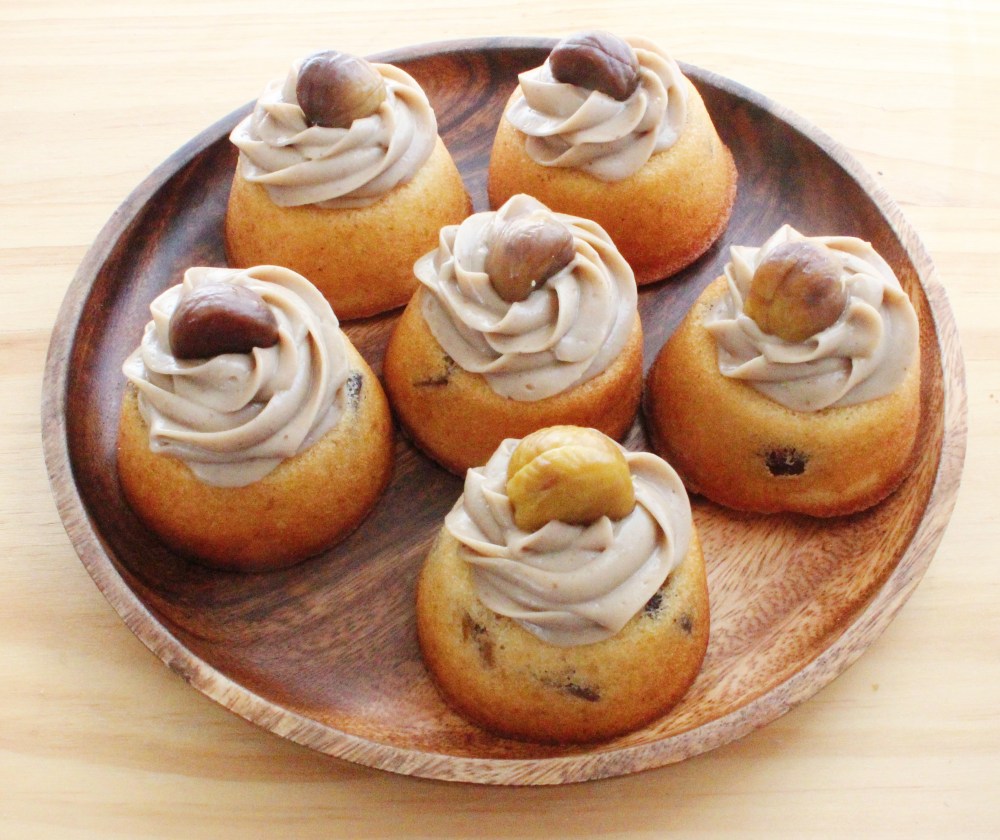 The cake itself is a yogurt and brown butter pound cake, that I folded chopped chestnuts through. The brown butter would accentuate the toasted notes of the roasted chestnuts, while the usage of yogurt in the cake would result in the pound cake not being TOO dense. While I wanted it to be a hearty cake, I don’t want anyone to feel disgusting and weighed down after eating just one. Maybe after eating four or five, since this recipe makes 12 mini cakes in total. For the topping, I went with a chestnut and brown butter mousseline. A mousseline is a pastry cream(thickened custard usually used to fill cream puffs, Boston cream pies, and sometimes doughnuts), that is mixed with a generous amount of butter to create this velvety mousse or cream. It is quite similar to a French buttercream in that sense. In this recipe, since I’m flavoring the mousseline with roasted chestnuts, I’m using brown butter instead of regular butter, as the starch from the chestnuts can emulsify it all together and allow that mousseline to be velvety and smooth still. As the cake is on the lighter side as far as pound cakes go, the mousseline will not weigh it down or make it too heavy either, luckily!