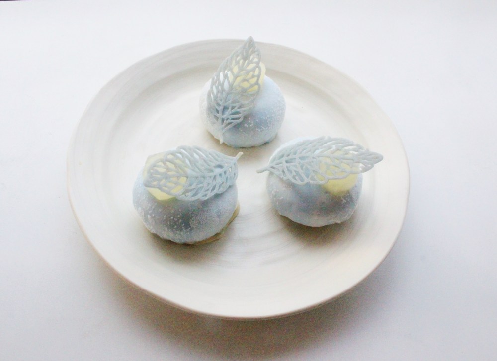 As an awkward middle schooler who was just diving into Japanese pop culture, I was stunned to find out how popular clione(also called sea angels) were. Pronounced “klee-oh-neh”, they are a relative to the sea slug, and are these little, translucent creatures that float through the ocean. If you have ever played Pokemon games before, the Pokemon Manaphy and Phione are actually based on these little critters. Clione facts aside, that was what inspired this recipe in terms of the presentation, but also a little but of the flavor profiles. I wanted to make these cute little blue petit gateau, with hints of yellow and white, just to capture the aesthetic of a clione.
