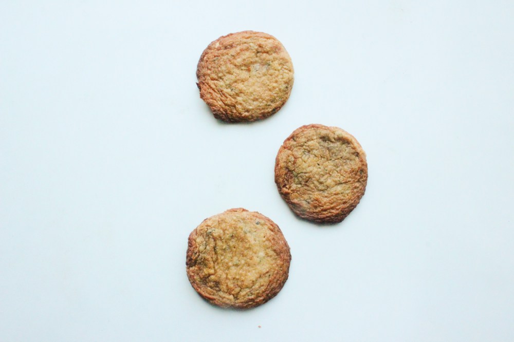 For the cookies themselves, I went with a decent amount of dark brown sugar, just to sort of effect the caramel-like flavors from the furikake Chex Mix. I also used soy sauce as a further nod to that, in place of salt. The furikake is added at the end(I made sure to read the label on my furikake before adding it in, since that is the absolute safest way to guarantee you are not adding fish flakes into your dough), just to keep the seaweed from going completely soggy. Even though this recipe sounds hella weird(because the idea of putting seaweed into cookies sounds super wrong), I swear it tastes delicious. The soy sauce is really there to add salt in place of actual salt, while it works well with the brown sugar, creating an almost instant-caramel situation in the dough without having to go through the trouble of making and blending caramel into a cookie dough to get the same end-result! Between the dark brown sugar, soy, and furikake, you have a pleasant smokiness, almost caramel-like notes, and the occasional crunch of a sesame seed, all in a super buttery cookie. You don’t really get any funky or super-savory flavors in it at all, and that just makes it all the more palatable as a dessert! I am sure if you have had either a seaweed-sesame egg waffle or furikake Chex Mix, these cookies would hit on both of those nostalgia points really well, and you could totally get your fix of either off of a batch of these!