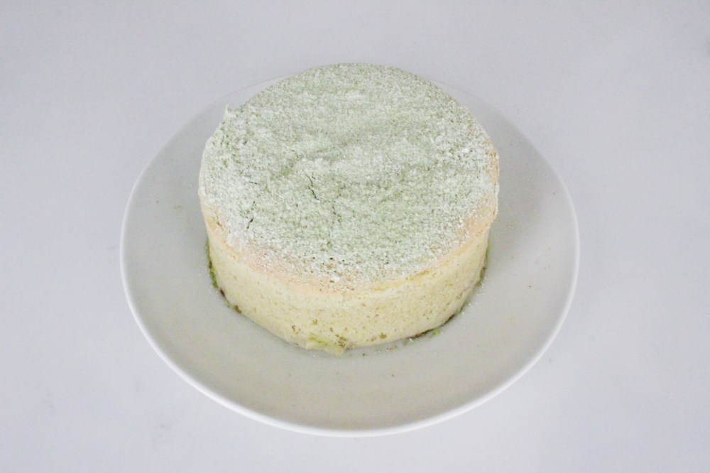 From a technical standpoint, this cheesecake is tricky. Overwhip the egg whites that you fold into the batter results in guaranteed cracks. Underwhip them and the whole cheesecake will crater in the center. Overbaking and underbaking will also result in both of those issues respectively as well(over to over, and under to under). With the egg whites, you want them to be soft peaks – they should still droop when you pull the whisk away from them. Make sure when you fold those egg whites in to not overmix them, or else you’re just pushing out air from the batter, which will cause it to deflate. Baking the cheesecake in a waterbath(using hot water, not cold or else you’re adding another 30 minutes to your baking time), guarantees an even and consistent bake as well. And going low and slow with the temperature(I go in at 300 degrees F for 1 hour, then 285 degrees for another 15 minutes), just to ensure that the cheesecake will rise and set. In case your cheesecake somehow does crack, I do have another failsafe, being matcha sugar. Dusting that gives the cheesecake this feathery finish, and you could use it to mask any flaws on the top(mine began to crack because I had too much fun jiggling it while it was still piping hot). When all of that whipping, folding, and baking is done and said, you will end up with a super airy and light sponge, and honestly one of the most technically difficult cake batters to execute!