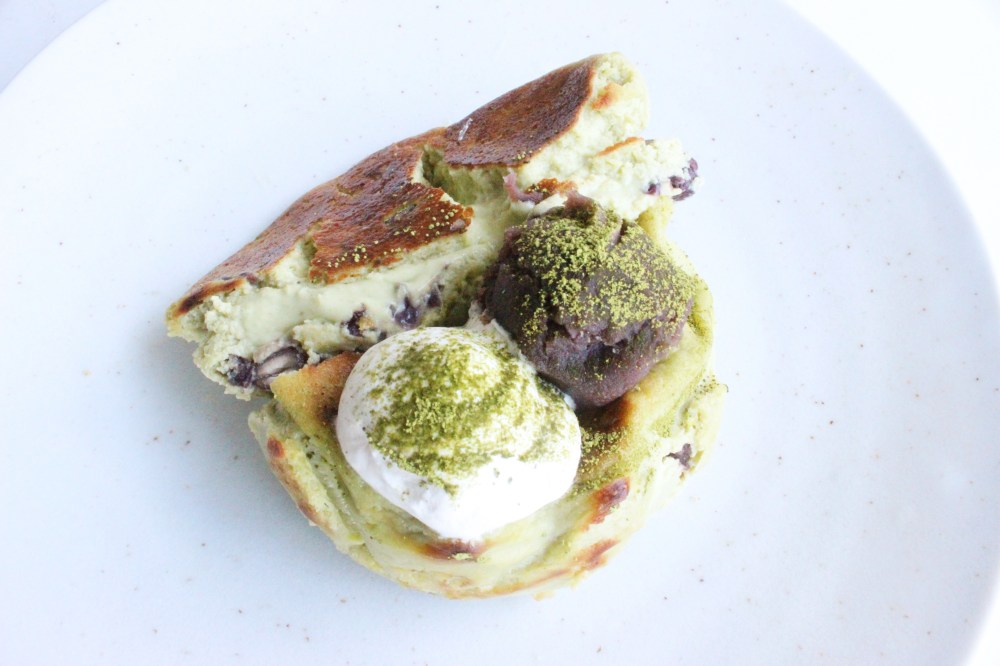 Whip heavy cream with sugar, vanilla, and salt to stiff peaks. Transfer to a piping bag and pipe on top of the cooled down cakes. Garnish with the remaining red bean paste and a dusting of matcha powder to finish!