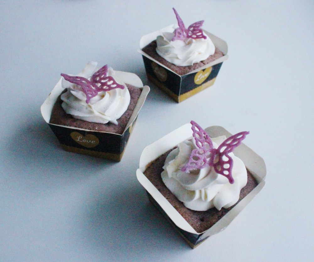 Top the cooled down cupcakes with the chantilly, coconut flakes, and the tuiles to finish.