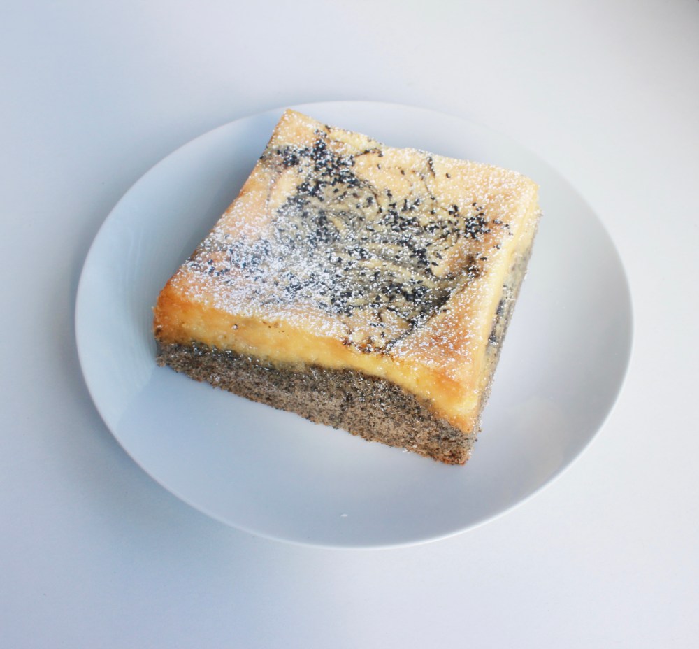 Scoop the cheesecake batter over the spread and chilled black sesame batter in the 6-inch baking mold. Spread the batter gently and evenly over the cake batter, tapping down the sheet tray that the mold is placed on gently to release any air bubbles. into the cheesecake batter your black sesame jam. Sprinkle on top of the cheesecake the black sesame seeds. Bake the cheesecake at 325 degrees F for 1 hour and 10 minutes. The cake should have only a very slight wobble in the center when it is fully baked. Allow the cake to fully cool and firm up(I recommend freezing it for at least 30 minutes) before attempting to unmold. Dust with confectioner’s sugar to finish.