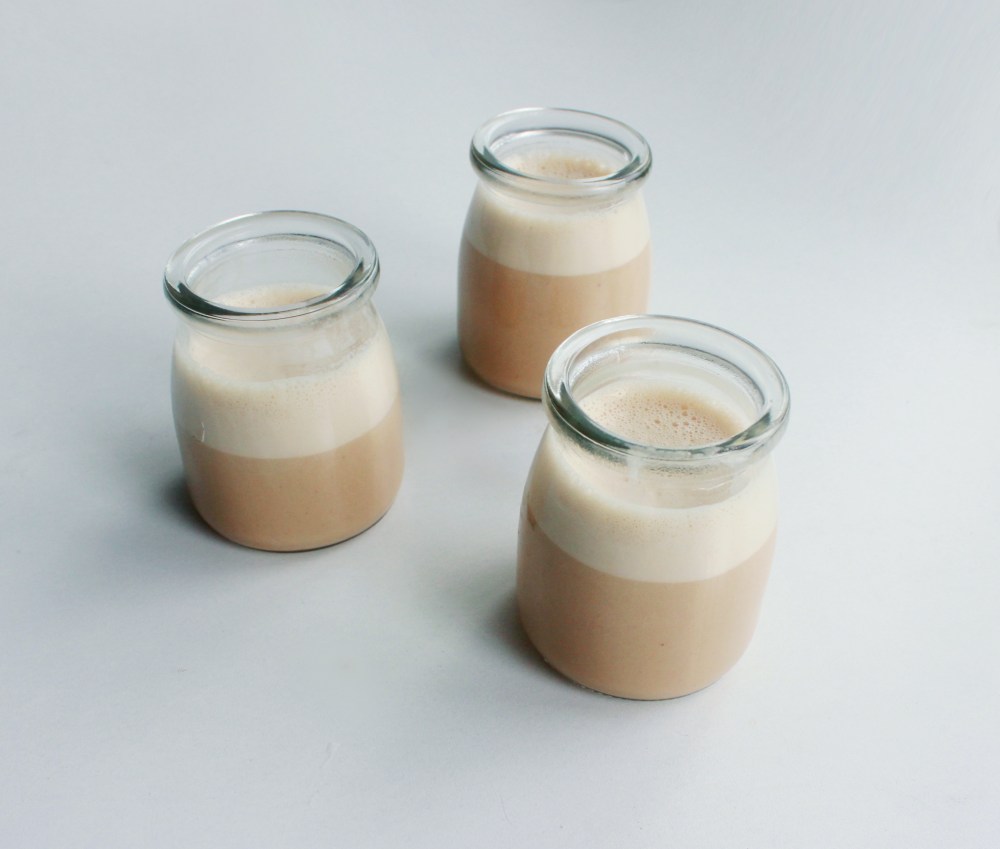 Combine all of your ingredients in a pot and bring to a simmer on low heat, stirring occasionally until everything is melted together. Alternatively, combine everything in a Vitamix blender and puree until fully combined.