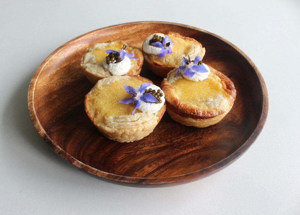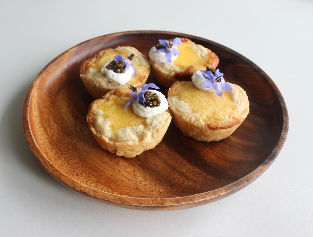 During season 1 of Sweet Genius, contestants were tasked to make a baked dessert using caviar. One dessert that stood out for all of the right reasons was a choux bun with a vanilla pastry cream that had the caviar folded through it. Chef Ron Ben Israel emphasized how elegant the combination was, and that was definitely a component that stood out to me. Again, it just reinforces my stance that caviar and eggs work together well, be it in savory or sweet. The one apprehension anyone would have about using caviar in a dessert is the general “fishy” taste to them. Even though that cream puff did not have an acidic-ish component, I felt like including something like that would give me personally a better peace of mind with using caviar in pastry. In a lot of ways, I am trying to just use it as a finishing salt substitute, while also trying to remove that fishy flavor. The easiest way to alleviate that is to use something tart, tangy, or sour, which will then open your palate and help you receive those more saline flavors in a less off-putting way. For my egg tarts, I opted to use a little creme fraiche on top, to help hold the caviar in place, but also to give that tang to offset the ocean-y taste as well, letting the caviar just provide pops of salt and mild sweetness, perfect and welcome additions to any dessert!