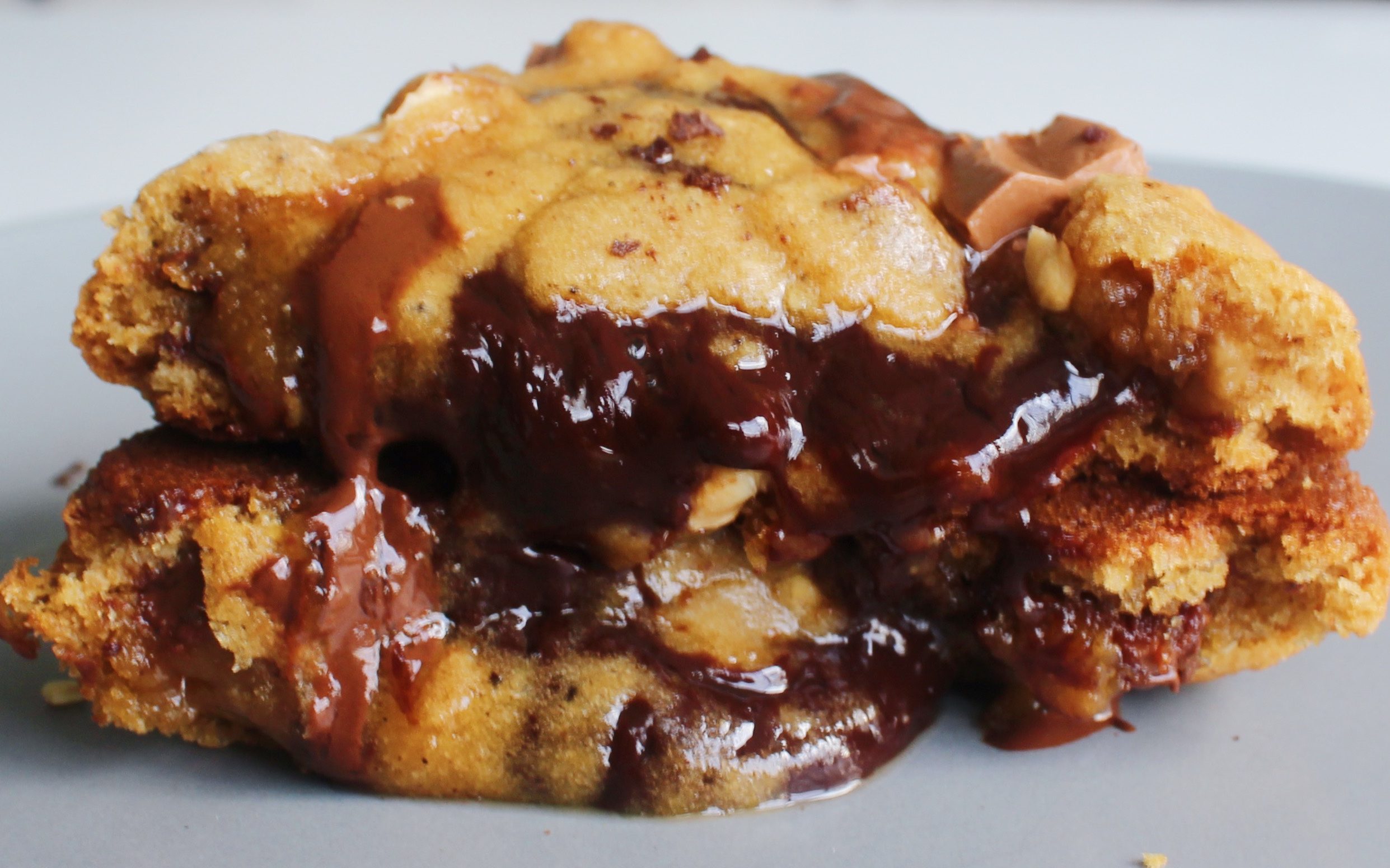 I wanted to make these molten stuffed cookies. I also had Nutella from Germany(which somehow tastes better than American Nutella because you know, European dairy products), so I went ahead and made a ganache with them, froze that into little disks, and stuffed those into balls of cookie dough. The technique of getting the cookie to fully bake, but for the filling to remain unscorched, or not get so liquified to the point it will explode out of the cookies, was very tricky to say the least. I figured that since there is technically a thinner layer of cookie dough surrounding the filling, that the best way to go is high heat for a shorter span of time, just to give the Nutella filling less of an opportunity to burst/leak out of the dough. I want the cookie to be just barely set, with a crisp, crunchy exterior, gooey innards, and that molten Nutella goodness in the center that will make me forget about the dark ages that was my pre-Hawaii intermittent fasting. And before someone tries to say otherwise about me dieting, it was fully my choice to do that, and yes, I did bring that suffering upon myself, but I did it strictly because I knew if I did not, I would be packing on tons of additional weight during that Hawaii trick.