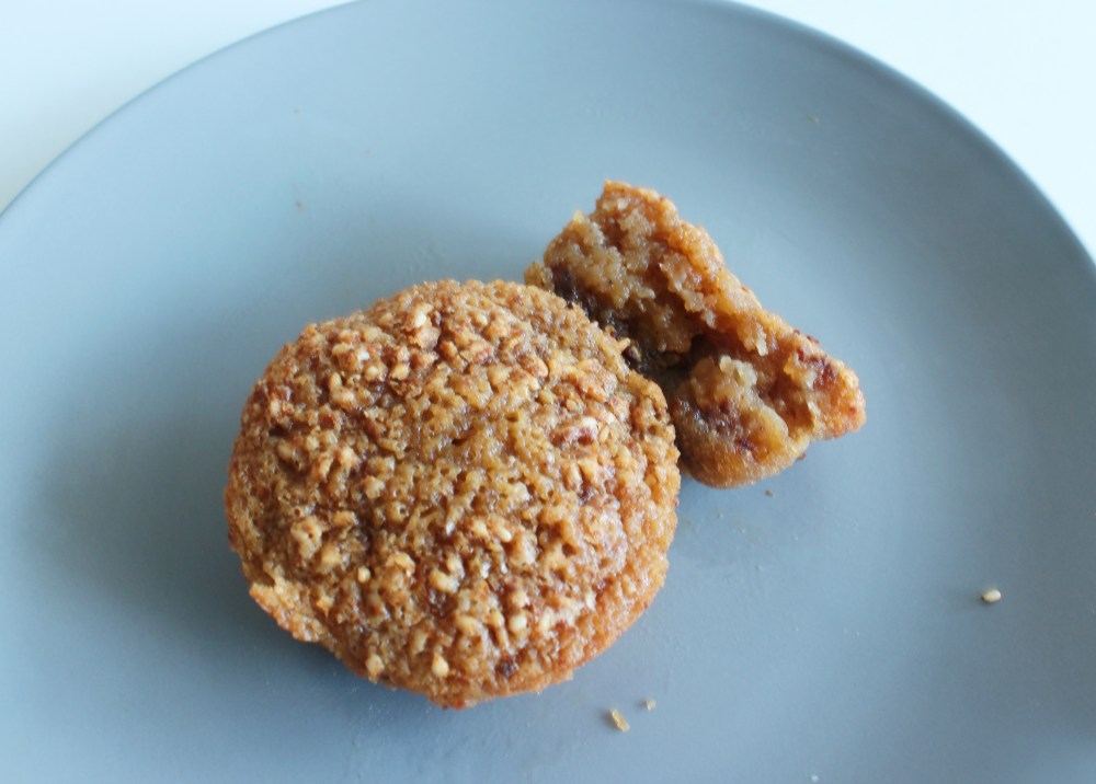 That whole lesson on cold brew aside, this recipe came about because I really wanted to use the cold brew concentrate in a way where the coffee is balanced. I have had brown butter lattes in the past, and I love how the nuttiness of the brown butter contrasts the coffee itself, and figured that would be a great route to take. I thought almost immediately about going the butter mochi route because butter mochi gives coffee everything it inherently lacks, being richness, fat, and sugar. For those who have never had it before, butter mochi is a Hawaiian snack, made with glutinous rice flour, lots of sugar, lots of butter, and it is baked like a cake. Compared to normal mochi, which is made with the glutinous rice and then steamed, butter mochi tastes more like a Western cake, but is chewier and almost gooey in the middle. Made more popular recently are butter mochi muffins, which take butter mochi batter, add a lot more leavening to it so that they are soft and fluffy, and that gets baked off into muffins. What I love about butter mochi, besides the fact that it is gluten-free, is that it is so decadent and fulfilling. It is the kind of dessert that gives you a hug as you eat it. For my take on a butter mochi muffin, I am using Ahran’s vanilla-infused cold brew concentrate to contrast some of the cloyingly sweet aspects of the batter, and folding in a crumb made from roasted white chocolate and toasted sesame seeds, to add a little texture, but also since the roasted white chocolate, brown butter, and coffee play off of each other really well. If you are a cold brew-lover, you will love these muffins. And even if you aren’t, you probably will still like these, just because the coffee adds a pleasant aroma, and tones down the sweetness, making these butter mochi easy to eat in the dozens.