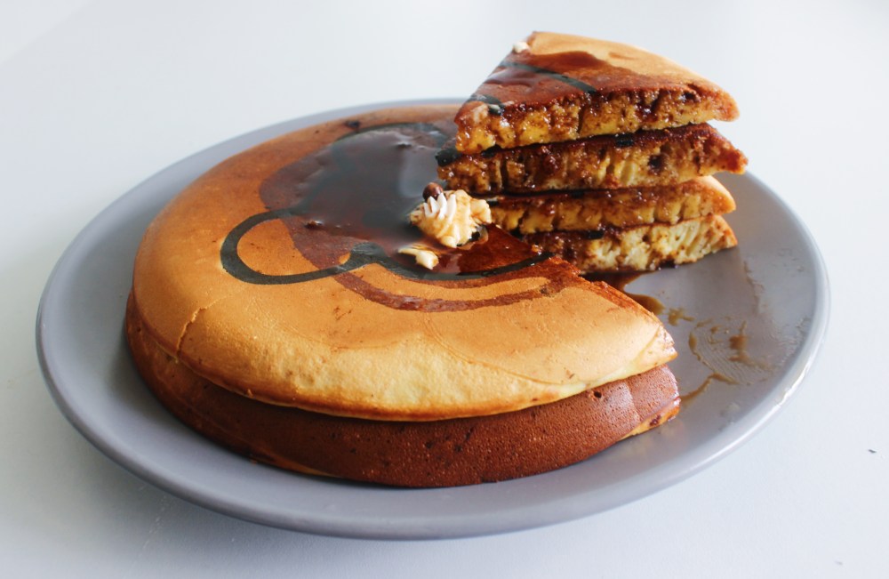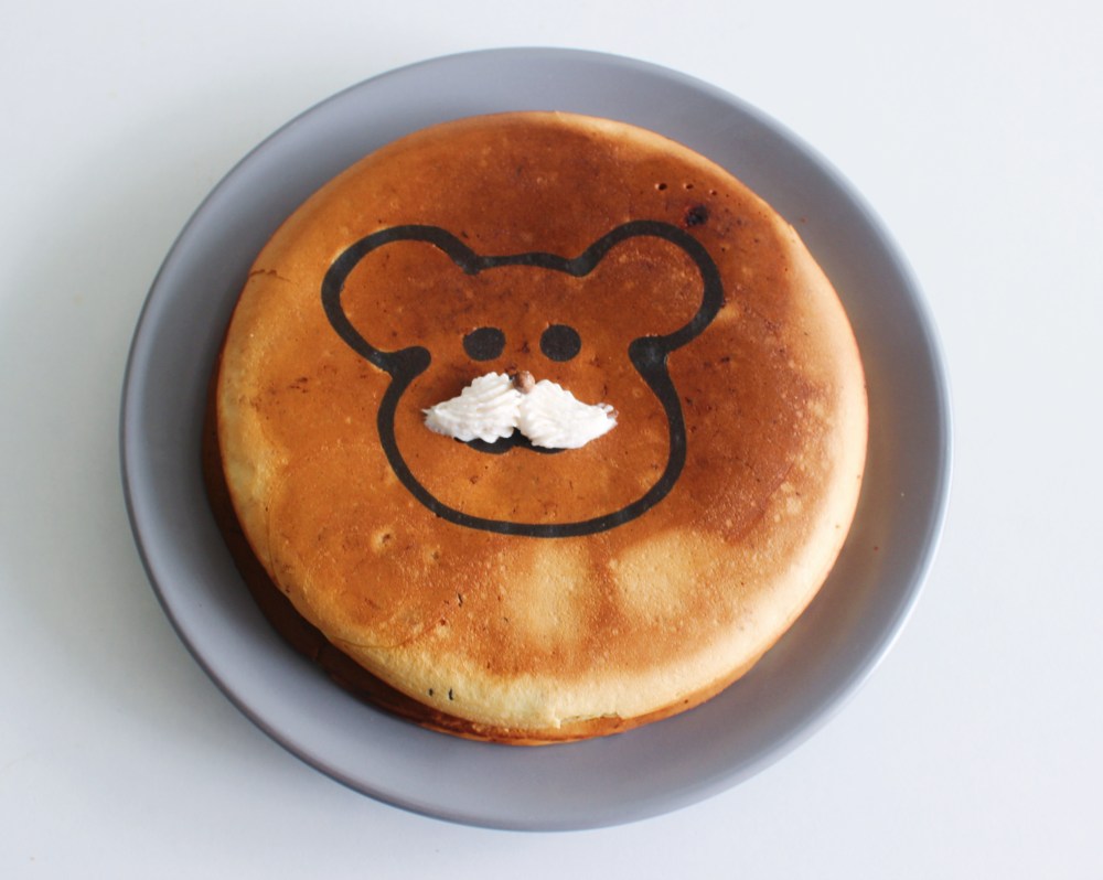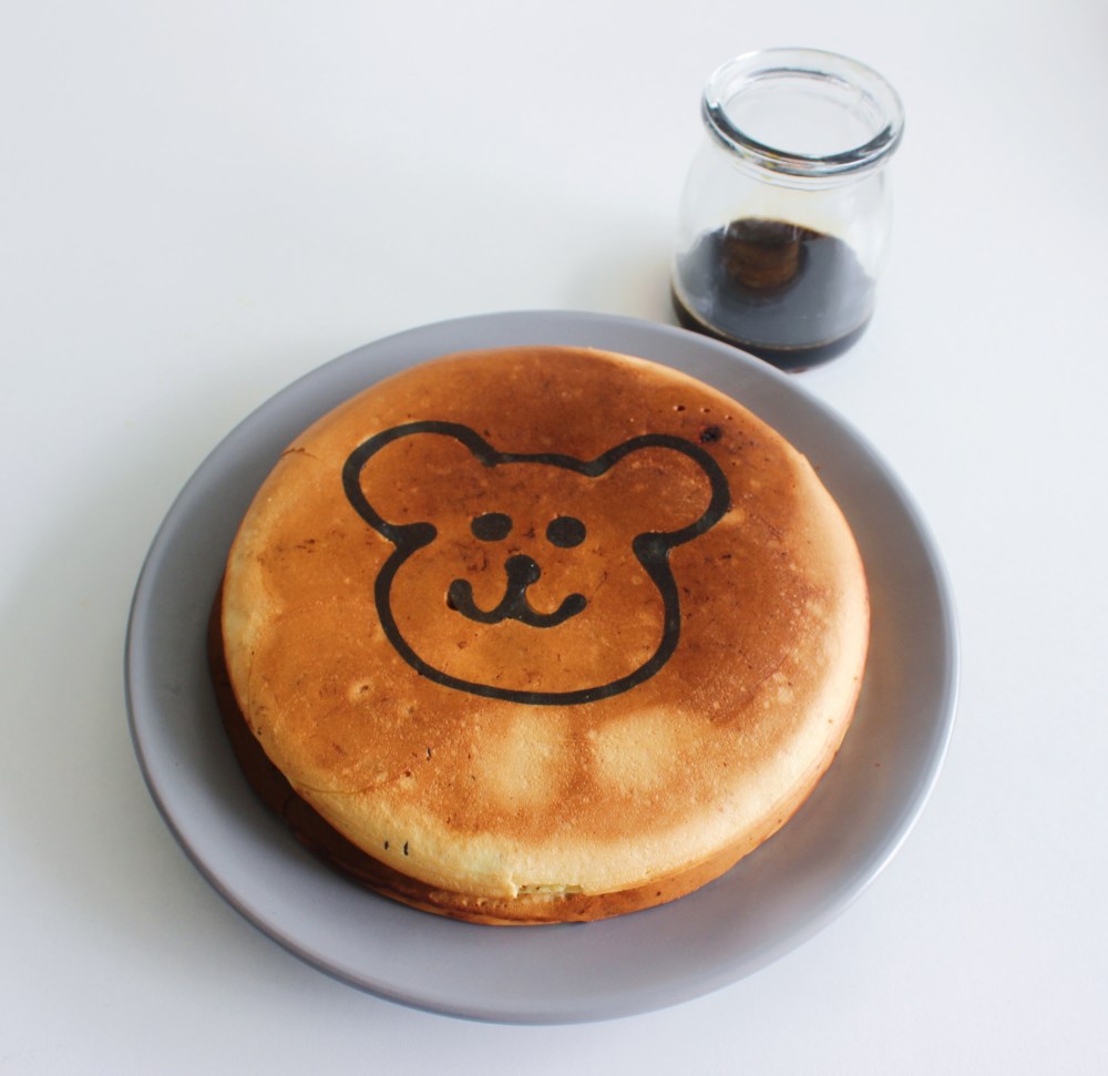 So other things worth noting in this recipe. You don’t have to use the roasted white chocolate-sesame seed situation in these pancakes. I literally only did that because I had to use up that component before I left town! Like I mentioned, I made my own kuromitsu(Japanese black sugar syrup), but you can always just buy it at a store, or even substitute it with maple syrup if you are a maple syrup-traditionalist. Making kuromitsu is straightforward, since you just melt down the rock sugar into water. Cooking these pancakes requires a lot of patience. The key to making these pancakes is going low and slow. Trying to cook them at too high of a heat will just burn them. You have to cook them for about 25 minutes on medium-low to low heat, just to ensure that they’re cooked all the way through, since they are super thick. I recommend using two nonstick pans, one per pancake, if you are attempting to do more than just one pancake at a time. I learned a lot about how to make these through trial, error, and a lot of waiting around and hoping the freaking pancakes cooked with the designs intact. My first attempt, I made the mistake of cooking the frame of the bear’s head first, then the eyes. The issue with this is that when the batter is fully cooked, it does not adhere to the nonstick pan as much, so when you pour more batter over that, you run the risk of the raw batter pulling up from underneath the cooked batter, resulting in your design being messed up. It took about four totals attempts for me to realize it was smarter to cook batter shaped into the snout/mouth first, then the eyes, and finally the head frame. This way, all of that will be able to cook evenly with the surrounding batter. Don’t be discouraged if you don’t get it on the first try! The good thing, regardless of how the design comes out, is that you will have a nice, fluffy pancake to nosh on while you go onto your next attempt!