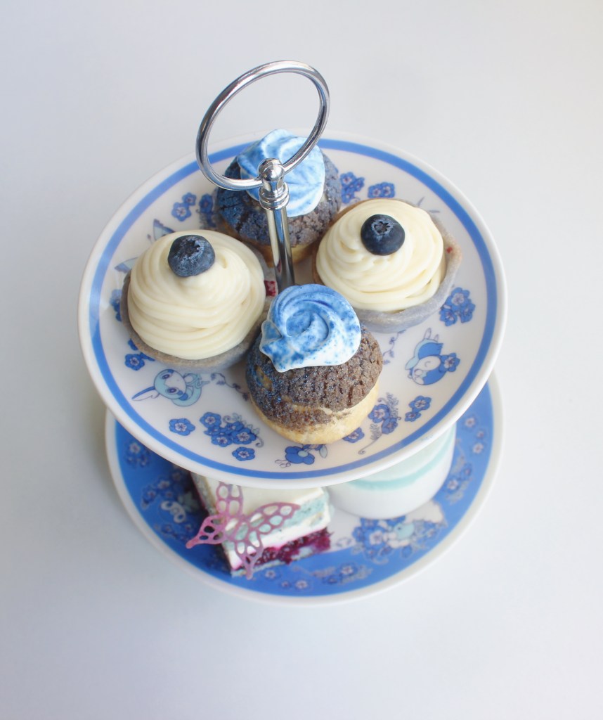 For the final white and blue dessert on my tea tower, I had to do a French pastry. It was between macaron or pate choux, and I opted for the pate choux, strictly because they were easier to present in an afternoon tea tower. I love making pate choux. It is the dough used to make eclairs and cream puffs, and in this case, we are making cream puffs topped with craquelin, which is a thin, sugary cookie that encases the light, airy dough and gives it a crunchy exterior. The choux itself is quite a finnicky dough to make. You have to first cook flour with boiling water and melted butter into a dough, then add eggs into that. Then that mixture is piped, then baked, which causes them to puff up into this super light and crispy dough. If you are including craquelin, you would add it on right after piping your choux, and bake the two together. Choux dough does take a bit of time to bake, since you need to properly dry out the insides of it, and adding the craquelin extends that baking time too, since now you are accounting for two different doughs here. For me, a choux bun finished with that craquelin is that little technical French pastry meets professional touch that it needs to set your choux dough apart from a home baker’s cream puff. Mostly because getting a choux with craquelin on topped properly baked is challenging, and also because the final appearance of a craquelin-laced choux is gorgeous and usually an almost perfect half sphere of baked dough.