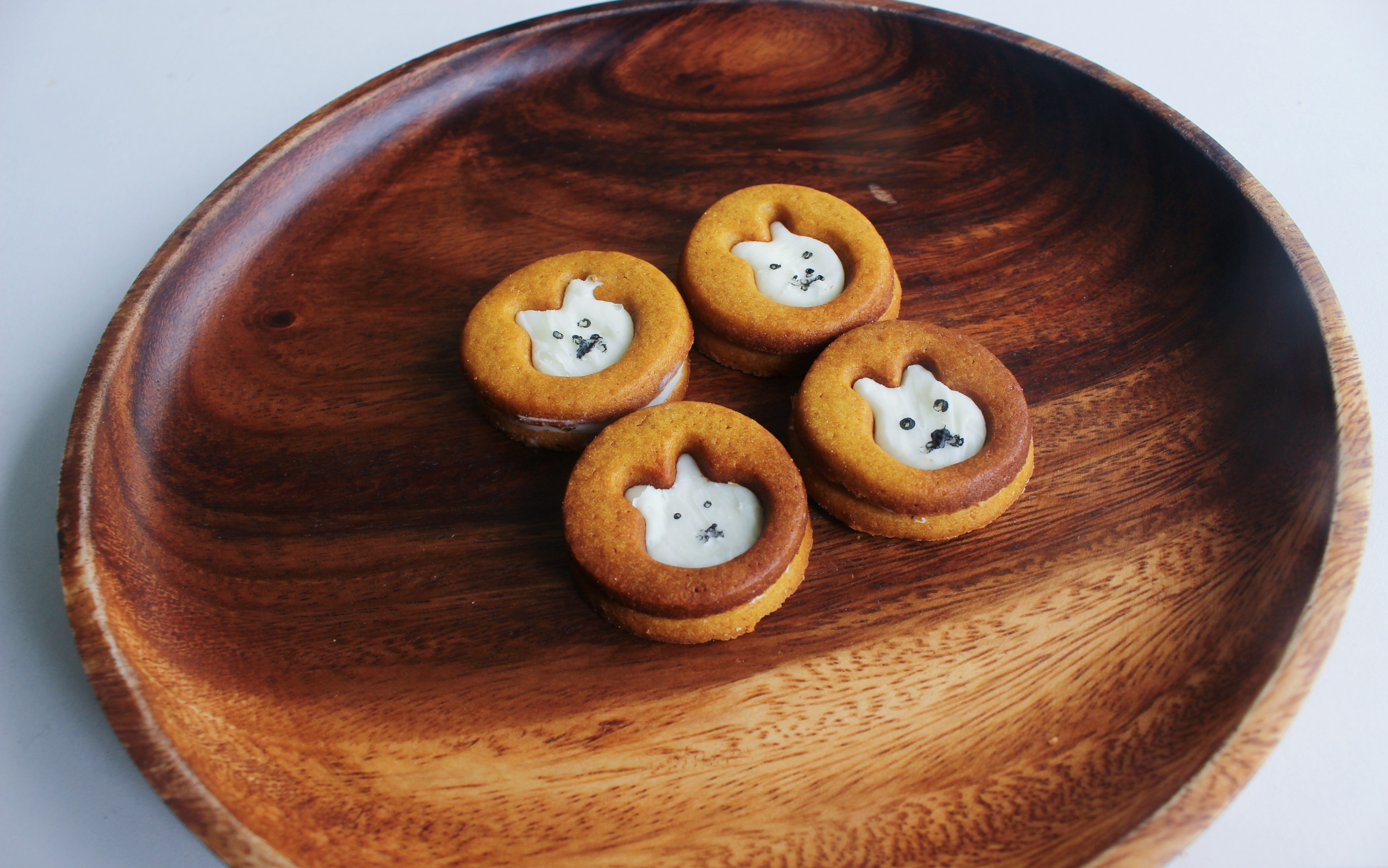 These carrot cake shortbreads came about because I had about half a bottle of carrot juice in my refrigerator, and I needed to find a creative use for it. So then I thought, why not reduce it down into a jammy consistency, which will then have an intense carrot flavor to it, and then use it in a baked good? I have made carrot cookie-type things before using that method, so I know I can do a shortbread-type of thing using the carrot juice reduction as well. And that’s when I remembered I had these cute bunny cookie cutters, and that I could make the same animal-themed cookie sandwiches that I did earlier with the bear-shaped cookie cutter, but this time, bunny-themed. Carrots and bunnies go hand in hand, so I figured it as a perfect match. With the carrot juice, I specifically reduced it down with cinnamon, since that would then taste exactly like a carrot cake. If I went with a tangier take on a white chocolate ganache filling scented with lemon juice, that would sort of taste like a cream cheese frosting, so the two together in one would literally taste like carrot cake! What I love about this recipe, besides the fact that bunnies, one of my favorite animals during childhood are aesthetically represented here, is that the buttery shortbread cookies actually took on the flavor of the carrot really well! The shortbreads taste like carrot cake, they’re bright orange, and contrasted with the white ganache filling, it really does look like a carrot cake cookie!