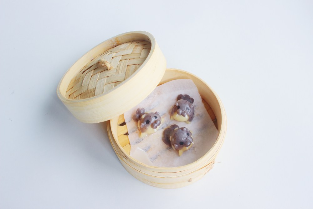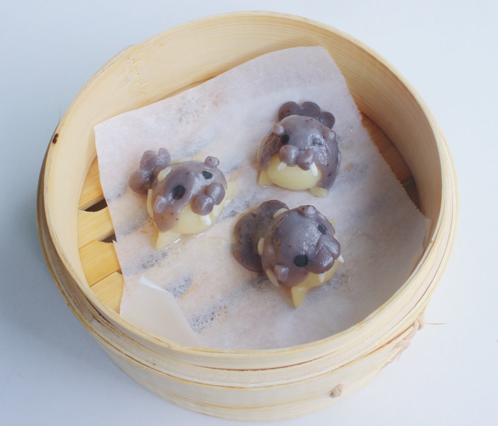 In a bowl, mix together the mochiko, tofu, and salt. Portion out about 90g of the dough and mix into that equal parts blue spirulina powder and acai powder until it is dyed an indigo hue. With the undyed dough, portion out 10g balls, rolling them until smooth to form the bodies of the Spheal dango. Use .5g-sized nubs for each fin, attaching them to the bodies as well. Roll out the dough cut, and cut out 1-inch disks. Cut out an ovular shape that is roughly 1/4-into the blue disks, and gently press the blue layer over each white dango to form the blue portions of Spheal’s body, and its tail. Use a butter knife to form the indentations of Spheal’s tail. With the remaining blue dough, portion out the snouts, with each being .5g in size, and pressing rice grains in to form the teeth. Press those onto each dango, and with the remaining blue dough, roll those into small balls and press them on as Spheal’s ears. With the remaining white dough, press on small spots of it to the blue dough to form Spheal’s white spots. Transfer the dango to a parchment and cooking spray-lined bamboo steamer, and steam on medium heat for 15 minutes.