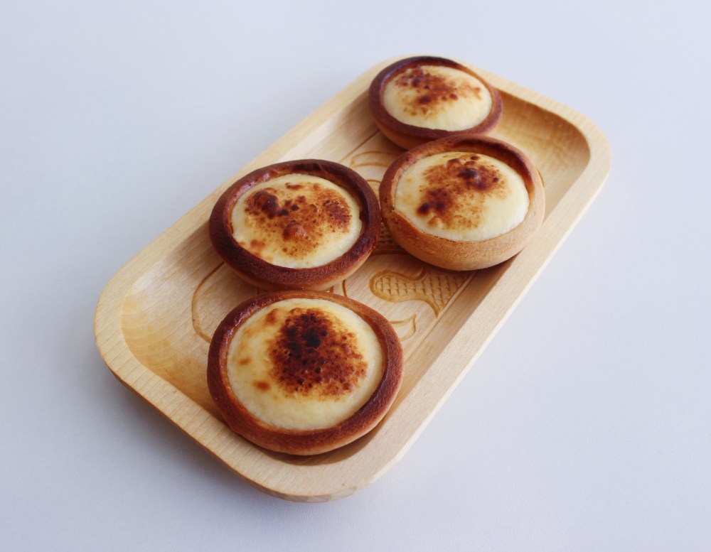 In a pot, melt down the sugar, cream, and gjetost. Bring the mixture to a simmer, and pour over your eggs and cream cheese. Whip until combined, and mix into that the vanilla extract. Transfer to a piping bag, and pipe the filling into each tartlet, filling them up all the way.