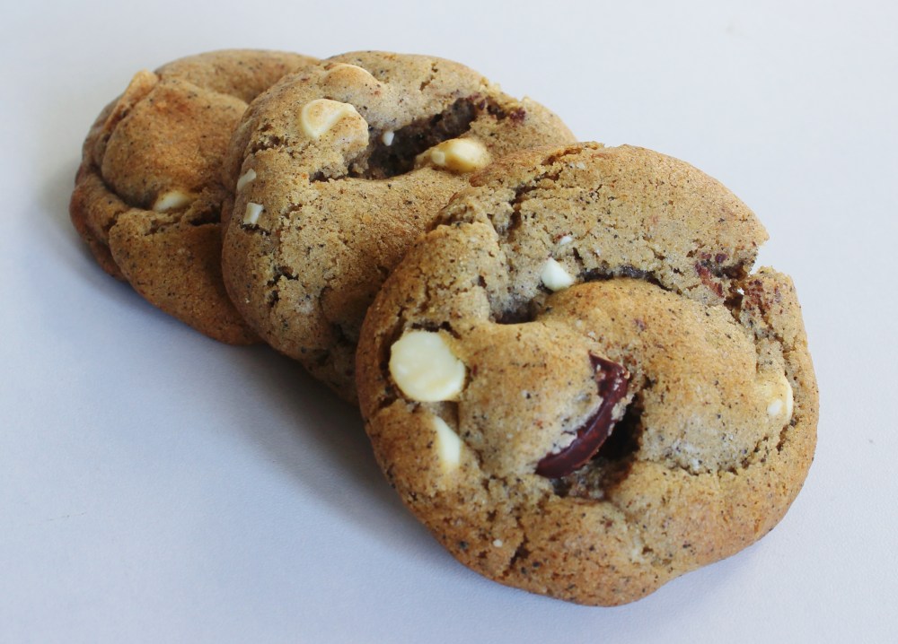 For the recipe itself, we start with brown butter. The trick behind making brown butter is to heat the butter low and slow until it begins to turn a brown color – it should smell kind of like how those yellow butterscotch candies in the cellophane wrappers tastes if that makes sense? One challenge with using brown butter in a cookie dough is that you usually want to start your cookie dough off by whipping cold butter so that it will aerate. Brown butter, freshly made, is a hot liquid. So you have two options: chill down the brown butter so that you can whip it, which takes time, or you can start by whipping sugar and eggs directly into the brown butter to bring down the temperature faster. I opted for the latter, since I refrigerated my cookie dough overnight anyways, and I did not want to extend the waiting time on this recipe more than needed. I usually add the chocolate last, after the flour, leaveners, and assam tea, to a recipe, since I do not want my chocolate chips to melt into the dough. Overall, for a cookie recipe, I would say that there is a little more technique involved, since you are making brown butter, and you are also moderating the temperature of the dough to avoid melting your chocolate into the dough prematurely, but the cookies themselves are delightful and one of my new personal favorites. They are very addicting!
