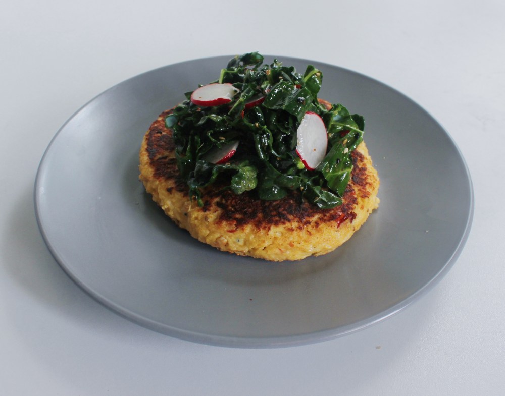 Whenever I purchase lump crab meat, I feel like there is always a doomsday timer floating over my head, making sure to remind me that if I don’t make something/eat this crab meat quickly enough, it will go rancid and my entire fridge will smell for it. These crab cakes were my solution to using leftover crab meat quickly, just so that it would not go bad and I would be stuck having to air out my fridge. I used panko, kewpie mayo, and chili flakes, along with an egg to bind that sweet crab meat together, just to create these serve, single-serving crab cakes, and I topped them with a kale and radish salad with what I jokingly call a mimosa(orange juice and champagne vinegar) vinaigrette. These crab cakes are kind of bougie, and given the circumstances on their conception, namely that I was making them so that the crab would not spoil, it is hilarious to think that the final product sounded like something you would eat at a fancy country club during the summer for brunch.