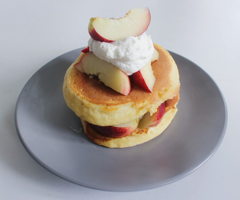 When I was trying to figure out what to do with my leftover ricotta cheese, one thing that Google listed was ricotta pancakes. I hilariously did a poll on Instagram on what to use that leftover ricotta for, with the top voted pick being ravioli. I already made the ravioli, but I somehow still had more leftover ricotta(I wish I could find smaller containers of it, because I usually only need 2oz of ricotta at a time, and then it becomes a whole doomsday timer to use up the remaining 13 or more oz of it, and don’t even get me started on making it from scratch, because I could, but then there’s the whole situation about leftover whey, and then we have an entirely different conundrum). That whole tangent being said, I love making ricotta-based batters. Cakes, fritters, even cookies(yes that’s a dough, but you get the gist of it), all can be made with ricotta cheese. But I don’t know why I never thought to make pancakes out of it! I am aware that ricotta pancakes are a thing – the ricotta adds moisture and a lightness to the final product, since it is a fat-containing dairy product. Since I was making these pancakes with ricotta cheese, I wanted to pair them with something that traditionally pairs beautifully with ricotta, being stone fruit. I had these white nectarines I purchased on an impulse buy, and I coincidentally enough made a very similar recipe to this year ago, being souffle pancakes with white peaches. In this case, I wanted to layer up these large, fluffy ricotta pancakes with some fresh juicy nectarines, whipped chantilly cream, and a homemade elderflower syrup in lieu of a maple syrup.