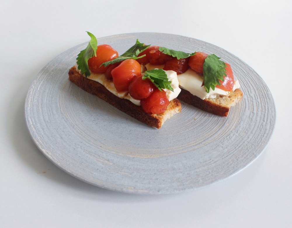 In terms of technical difficulty, all of the technique lies in the bread. If you are making your own sourdough bread from scratch, that requires a starter. Luckily I do have a previous post that entails all of the instructions to make your own starter. I did cheat a bit with the bread I used here and made my sourdough with starter and yeast, just because with sourdough starter, it can be inconsistent so the yeast does guarantee that the bread will proof and rise properly. If you really want to be lazy though, just use a good quality pre-made sourdough, and then this recipe goes from a 6 or 7 out of 10 in difficulty and time commitment to a 1. When I was making this recipe the day of, I already had made a sourdough loaf the day prior, so it look me less than 20 minutes to get everything prepped, made, and photographed. With the Momotaro tomatoes, I took a page out of chef Jacque Pepin’s book and made them into little “cherry tomatoes” by peeling the tomatoes, cutting them into smaller pieces, and using a towel, pressing them from wedge form into little spheres. You can totally just slice up tomatoes and serve that instead if you want, I just wanted to do something that looked a little cute and different. With the Meiji tofu, I used silken since it is super creamy and soft. Meiji tofu is quite special because it uses twice the amount of soybeans compared to regular tofu to give it that ultra-silky texture and delicately sweet flavor. It was funny because this recipe was originally going to use ricotta cheese, but I used that up on another recipe, and while I was rummaging through the grocery store, I saw Meiji tofu and realized that this would be a way better fit anyways, so we are running with it! If any substitutions are needed, you can also just regular silken tofu if it comes down to it, but I would recommend adding a little olive oil onto it if you want to go that route, just to bring a richness back into the tofu itself. That being said, this recipe was a tasty one and makes for a great snack!