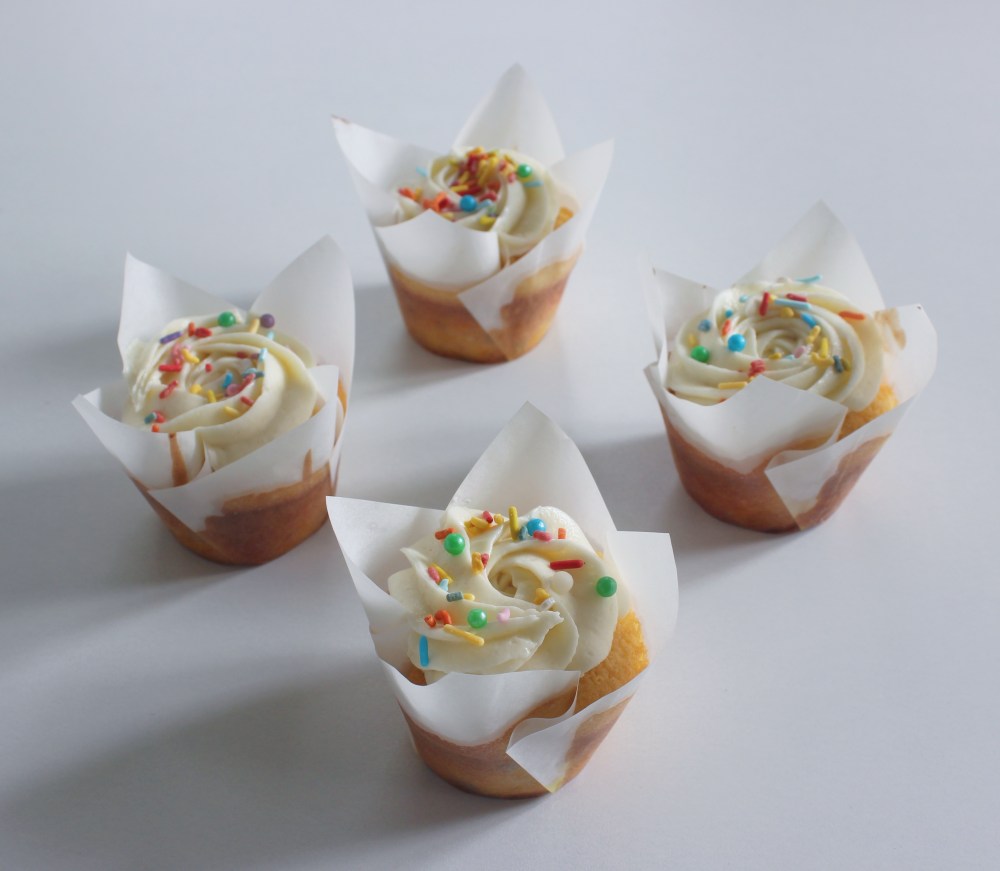 I feel like almost any American can recall a time in their lives when they go to a birthday party and are presented with plain vanilla cupcakes with rainbow sprinkles, either baked into the cake, or speckled on top of a vanilla or chocolate frosting. It is honestly such a basic thing, cake, frosting, sprinkles, but at the same time, it is something that most people have grown up eating at one point or another. Personally, I have a weird experience with those generic grocery store-looking cupcakes. They are dry, crumbly, and kind of fell apart when you bit into them. And since I grew up in a neighborhood where gourmet bakeries weren’t really a thing, I came to expect that as the norm for cakes. It was not until I learned how to bake myself that I realized how duped my childhood was, and how much I wished I could have experienced a properly baked funfetti cupcake. So that was what spurred this recipe. Nostalgia, and a need to improve a past memory, just to make it up to young Fred who assumed that all cakes were supposed to taste like styrofoam.