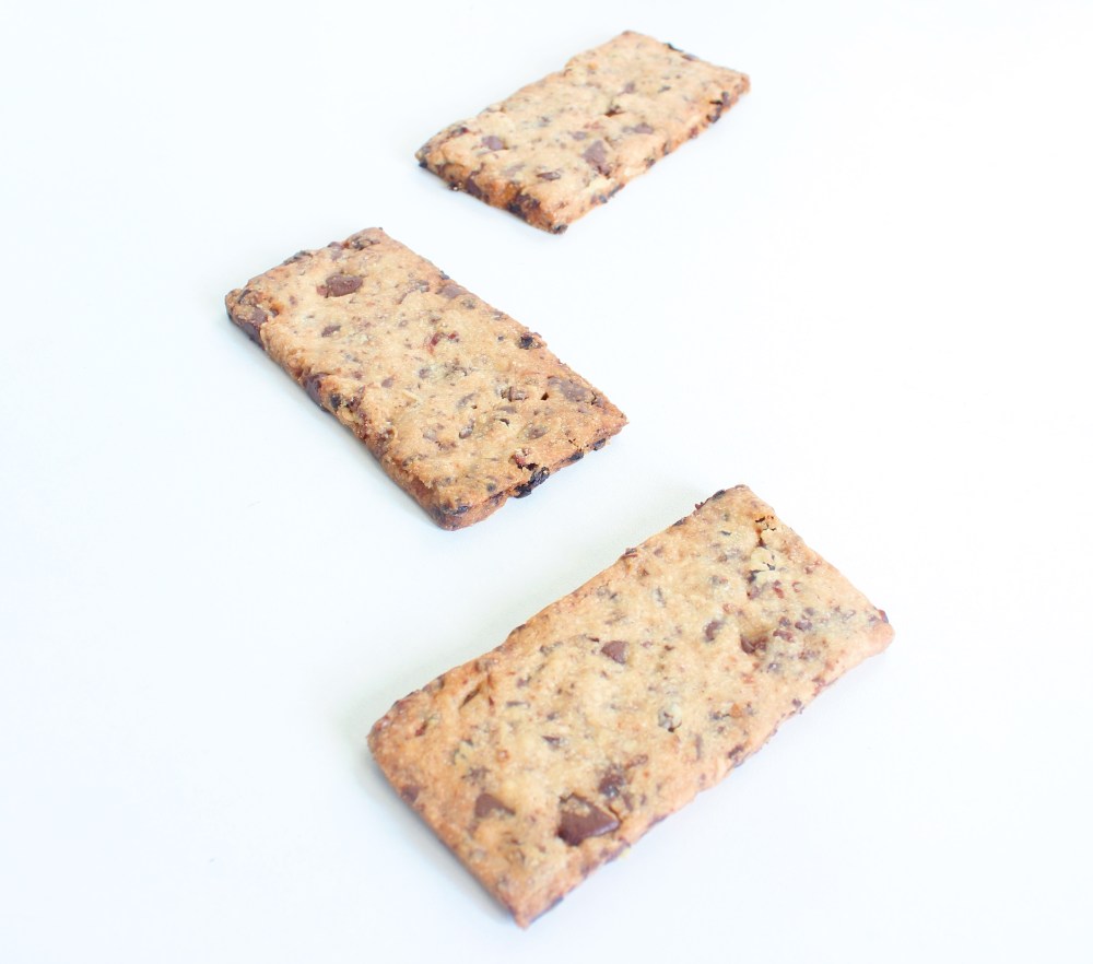 In a food processor, start by blitzing the flour, cherries, butter, sugar, and salt together until a crumbly, sandy dough has formed. Transfer that to a bowl and mix into that the cacao nibs, chocolate, egg yolk, and vanilla to form your dough. Refrigerate the dough for 20 minutes. On a lightly floured surface, roll the dough out to about 1/8-inch thickness and cut out 2-inch by 4-inch rectangles from the dough. Transfer the cut dough onto a lined sheet tray, spacing each piece 1 inch apart from each other, and bake at 350 degrees F for 15 minutes. Allow the cookies to fully cool before serving.