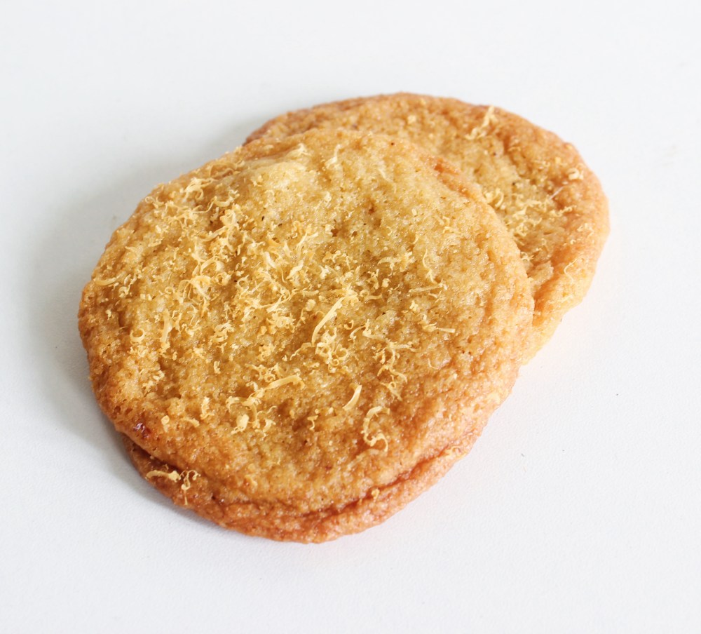 Corn cookies have been an ongoing love affair for me circa 2016, when I first made them after watching Christina Tosi make them on Mind of a Chef. They have really evolved over the years, and this is basically corn cookie version 8 or so. What makes these corn cookies unique is my usage of gjetost cheese – gjetost is a Norwegian caramel cheese, made by slowing heating up goat milk until it reaches a dulce de leche or cajeta-like state, but without the additional sugar. If you want to make a quick cajeta or dulce de leche, you can literally just caramelize sugar, add in grated gjetost, and a little bit of milk or cream, and you will end up with something convincingly similar. That is to say, gjetost cheese is the perfect ingredient to pair with anything that tastes better with caramel, like let’s say, corn? With this recipe, I went with my corn cookie dough, using brown butter, and gjetost cheese, to give the final cookie this warming, comforting flavor. For the corn powder I used in my dough, it was the Kotoshima brand Japanese corn powder. I found it at my local 99 Ranch, but if you do not have one of those nearby where you live, I would recommend checking out a Chinese grocery store(ironically my Japanese grocery stores don’t carry this for some reason), and if all else fails, finely grinding cornmeal down into a powder can also work. I also finished the cookies with some grated gjetost, just to give them a nice caramelized exterior and more of that nutty, delicious gjetost flavor!