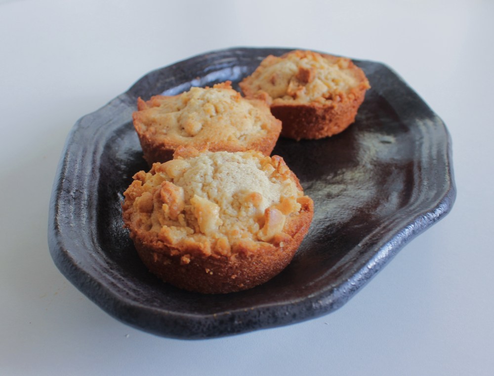 I came up with this recipe namely because I was craving financier, but I was also craving coffee cake. Coffee, or crumb, cake consists of this dense, rich cake that is usually made with sour cream, and lightly spiced with nutmeg and cinnamon. It has streusel bits baked throughout it, which adds a pleasant crunch and a textural contrast to the softer sponge. My friend and ex-coworker Georgina would always rave about the LAUSD coffee cake, so it became a recurring thing for me to make her a variation of one whenever her birthday rolled around. With financier, those are French brown butter-almond cakes, which have a butterscotch-like flavor profile to them. I LOVE financier. They are light, airy, and very easy to make. That and I love brown butter, so anything that uses it, I am almost instantly on-board for. I used to joke that if I could, I would bathe in brown butter, because I love the way that it smells; think about flavor those round yellow butterscotch candies in the clear cellophane wrappers, but less sweet. So I figured, why not combine financier with a crumb cake, and the end result was fantastic! Soft, buttery spongecakes with crispy streusel-y bits running throughout them! These individual cakes are honestly tasty enough to eat on their own, without any sort of other garnishes. I personally love eating them in the morning, since they really are the perfect accompaniment to a cup of coffee, or in the afternoon, with a cup of tea. In other words, true to their coffee cake inspiration, these financier crumb cakes are caffeine’s best friend.