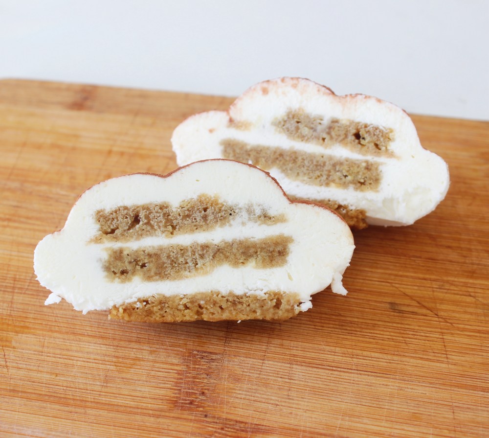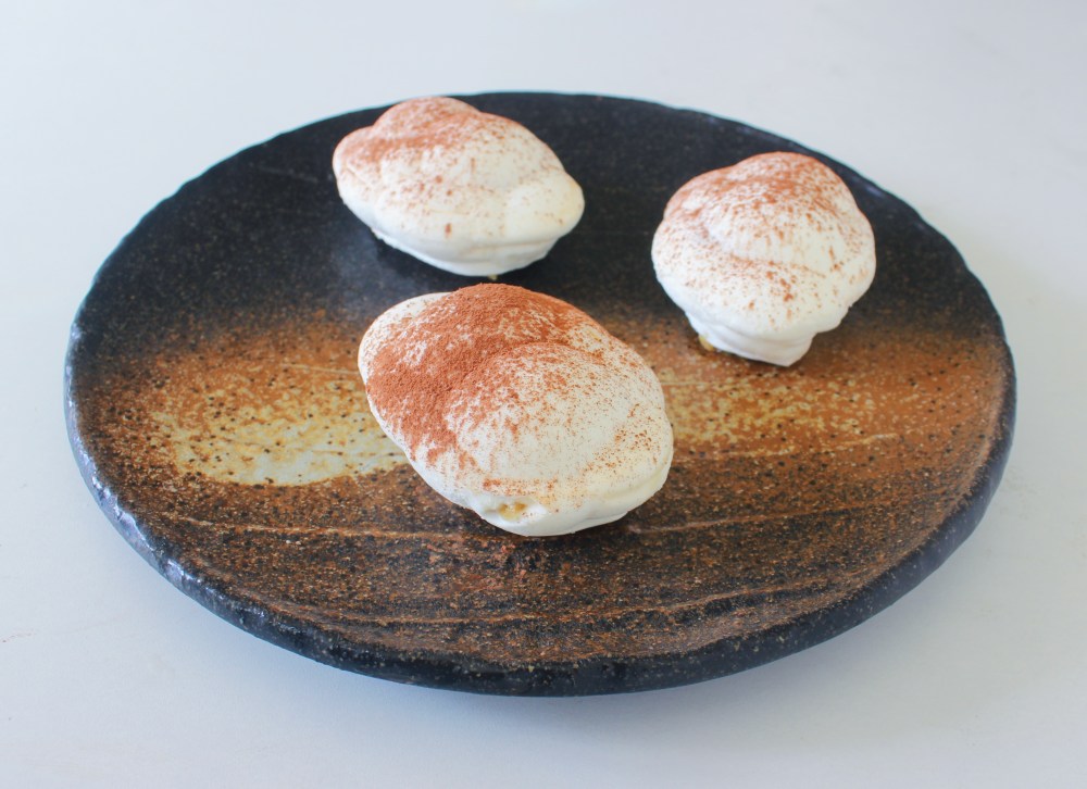 I will admit that from a technical standpoint, this recipe is actually on the easier side to execute. There are only four components to these mousse cakes: an almond sponge, a tonka bean-mascarpone mousse, cold brew-amaretto soak, and a dusting of cocoa powder just to keep in line with the classic. In terms of difficulty, a lot of these parts come together really easily. The sponge does require whipped egg white, but if you use a stand mixer, it is super easy to make. The mascarpone mousse admittedly is the most technical part of this recipe; whipping mascarpone can cause it to separate and curdle due to the high fat content, so the key is to be gentle with your folding of it so that it does not start to do that. The other part is the waiting time. Since we are putting these tiramisu into silicone cloud molds, it will take at least 2 hours for them to fully freeze before you can safely unmold them. That being said, for the less patient people out there, you can just layer up all of the components into a serving glass and have just a classic tiramisu instead and in probably 1/4 the amount of time! Ultimately, the cloud molds are just there to make them look cuter, but the flavor will be all the same, with nutty almond sponge, creamy tonka bean mascarpone, a nice hit of cold brew and amaretto, and the classic cocoa powder to finish.