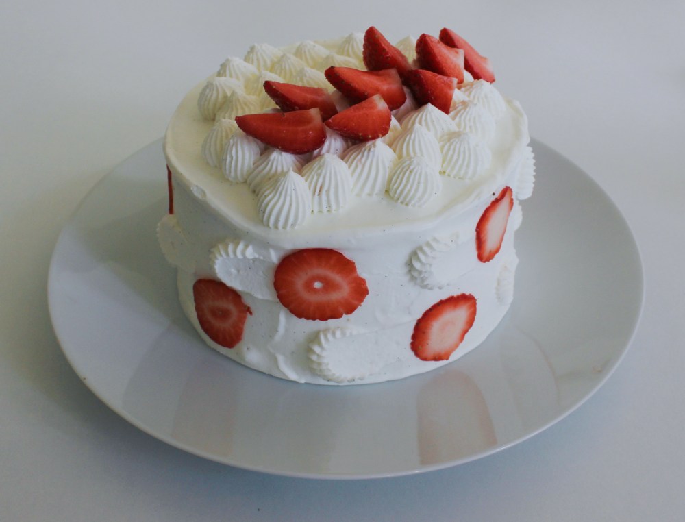 While I was at my friend Hannah’s wedding, I happened to befriend a couple sitting next to us, who also lived near the South Bay area(of Los Angeles, not San Francisco). It’s not every day that you meet people who live in that part of LA county, especially because it is a much more residential area. Usually people my age tend to prefer living in more up and coming areas like Silver Lake or Echo Park, which are more LA-property instead of the suburbs. So anyways, after some talking about what we do for work and whatnot, they actually wanted to order a cake from me! They specifically requested a berries and cream cake with a custard filling. So that was exactly what I whipped up with them. I envisioned this super soft vanilla chiffon cake with custard, macerated strawberries, and a light vanilla pastry cream. Since this was a cake order, I was unfortunately able to take a cross section picture of it, but I was able to at least decorate the exterior of the cake to fully communicate that it is indeed a strawberries and cream cake! I knew I was going to pipe the cream on top, and decorate the top with strawberry wedges, but I also wanted to garnish the side with more strawberry slices, just to really add that dramatic color contrast between the two.
