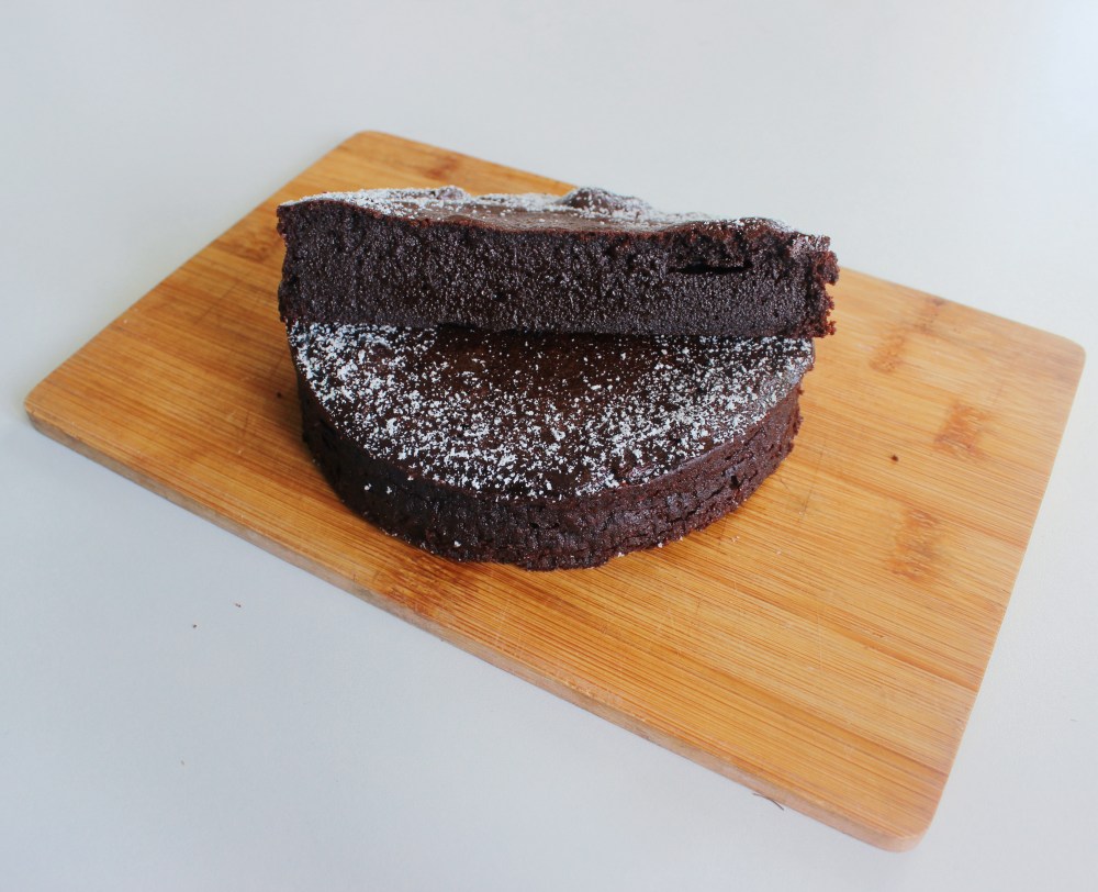 In terms of general difficulty, this is not too tricky of a cake to bake. The batter itself does take a few steps, since you have to make a coffee simple syrup, then melt chocolate, then mix those two things together with eggs. However, since the eggs are being added off heat, there’s literally next to no risk of them scrambling in the batter! Your biggest challenge here might be purchasing oven-safe 4-inch ring molds. But you can find those on Amazon relatively easily, so there’s that. So long as the cake tins are lined with foil, the batter cannot escape from underneath the ring molds either! The longest part of this recipe is probably the baking/setting time. Yes 35 minutes is considered an abbreviated bake for an FCC, but compared to my usual recipes, where my cakes take 20-25 minutes, 35 might feel like a prison sentence. At least it did to me anyways, but I tend to live life at 2x speed due to just being a naturally more impatient person. But the real killer here is the setting time. If you do not give your baked cakes enough time to fully cool, you will end up with warm chocolate pudding, or worse, chocolate-scrambled eggs. You need to make absolute sure that the cake is cool to the touch before attempting to unmold it from the ring molds, or else the cakes will basically fall apart. That is usual consequence of baking something without either gluten or a gluten-replacement(like xanthan gum), but unlike other gluten-free desserts, this one requires a lot less things(like gluten-free flours or xanthan gum) to make, so there’s that anyways! Typically, a bigger FCC will require a water bath to bake the cakes evenly, and while one is always welcomed, I went without one just because of how small the cakes were. For the most part, they actually baked pretty evenly as shown below!