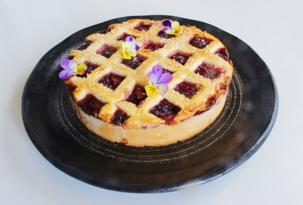 I will honest in saying that my first attempt, while it looked great, I wound up with a layer of raw dough between the bottom crust and the jam. So for this posted recipe, I switched up the instructions to blind bake the bottom layer first, just so that as the top crust with the jam bake together with that, we don’t risk getting a soggy bottom. Hilariously, if you do end up with a soggy bottom(I’m so tempted to make jokes about this but I won’t), what we wound up doing was scraping the filling and top crust off, microwaving the bottom crust for like a minute, then adding the jam and top crust back on. It was…..not ideal, but it worked? That being said, again, we are going to bake the bottom crust entirely first, just so that when the jam and lattice are placed over that, it will not be raw at the least. For the dough, it is a shortcrust dough, so tons of butter. With the jam, it is made with fresh fruit, a little elderflower, and cornstarch, just to thicken it. For the dough itself, I had a lot of fun ensuring that it was low-waste. I started by rolling out the dough first and cutting out a lattice pattern using a 6-inch ring mold, then a smaller square cookie mold to form the lattice without me having to actually braid any dough. And then with the remaining scraps, I re-rolled that to form the bottom layer. That way, you don’t have any scraps of dough that go to waste!
