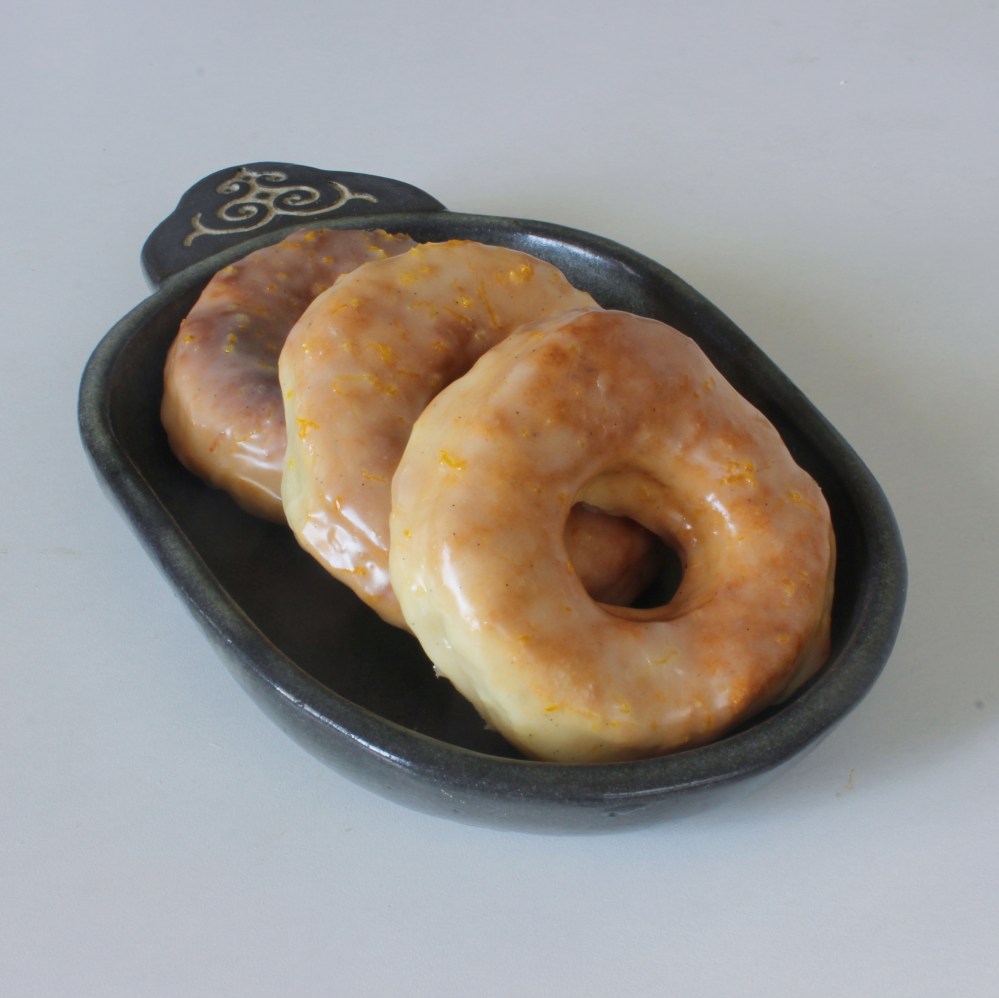 When life gives you many, many lemons, you have to find things to do with them besides make lemonade. So when I happened upon a bunch of Meyer lemons, I already had a couple ideas in my back pocket. Meyer lemons, compared to your standard lemon, is a more orange hue compared to the yellow, and have a sweeter flavor – that makes them ideal for desserts or drinks, since you don’t have to add as much sugar to balance them out. I love using Meyer lemons in curds, ice creams, or vinaigrettes for that reason. I have been wanting to do air fryer cake doughnuts again for a while now, and figured, why not make them with some of the lemons? I could use the juice in the dough, making buttermilk with the lemon juice and heavy cream, just so that the dough can have that cultured dairy, which results in a tangier, lighter crumb, and a craggy, old-fashioned look. And then with the zest, I could use it in the dough as well to flavor it, since let’s be real here, almost all of the distinct flavor from a citrus fruit comes from the zest, since most citrus juices are just all varying levels of sour anyways. The juice in this case is also used in lieu of water for the glaze, since while Meyer lemon juice is sweeter than lemon juice, it’s still got some acidity, which will temper down the confectioner’s sugar in the doughnut glaze, guaranteeing that my glaze won’t be overtly or cloyingly sweet. All in all, these doughnuts took about 45 minutes to make from start to finish, so not too bad for a quick and cute dessert!