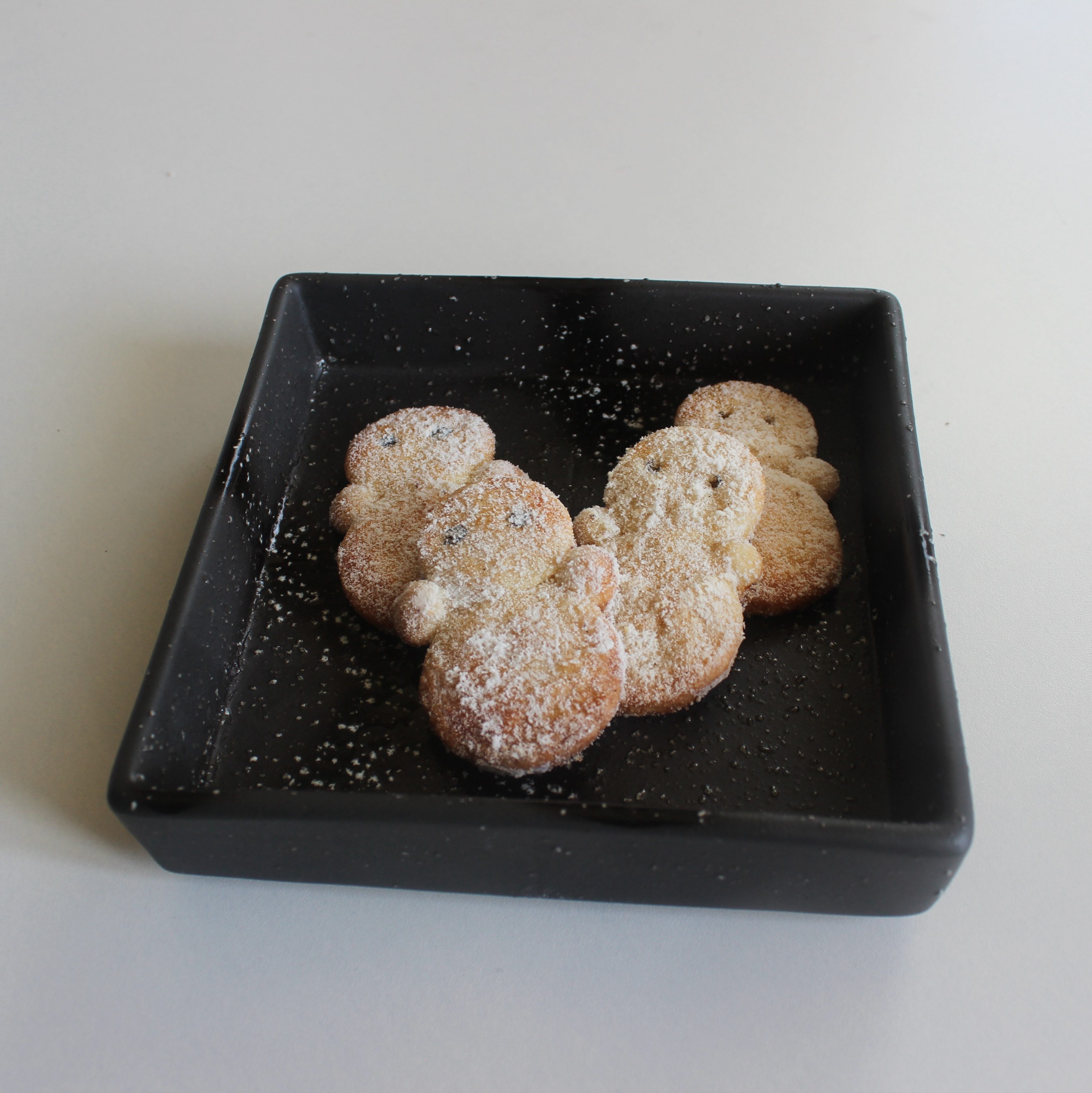 These coconut snowmen cookies were loosely inspired by a cute box of white chocolate snowmen cookies I purchased while in Niigata, Japan. The cookies themselves were simple designed, being two round disks with little circular bits to represent the arms, and they were dunked in white chocolate to finish. I wanted to replicate that, but using a coconut cookie instead, and dusting them with a white chocolate “snow”, made by mixing melted white chocolate with tapioca maltodextrin, for a more snow-like aesthetic. The end result were these adorable little snowmen that were nutty, sweet, and just perfect for a holiday cookie swap! With all of my cookie recipes, these were fairly simple to make. The cookies themselves were similar to a shortbread, but using coconut oil and flour in lieu of some of the butter and AP-flour, but they behaved the same way in terms of just keeping the dough chilled being the priority when you are shaping it.