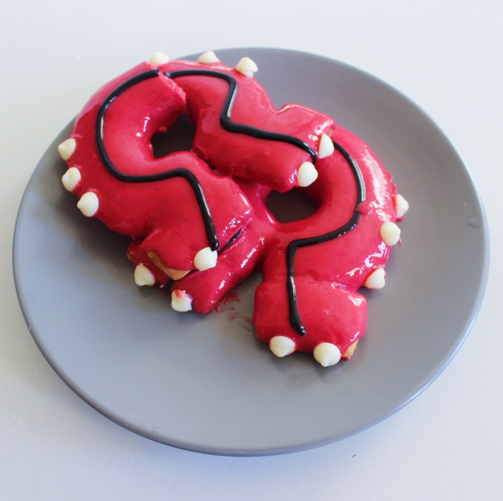 Anyways, if you’ve already read the Alpha Old Fashioned Donut post, you’d know that I used the same kind of old fashioned doughnut dough across all three recipes, but I changed up the glazes for each one, just to keep things unique. For Groudon, I wanted to use fresh fruit, just because red fruit is abundant, so I figured why not use up my raspberries and blood oranges that I had from some other recipes? So the flavor is blood orange and raspberry, which is probably a hilarious combination to depict a terrifying, spiky monster that presents the land, but whatever, we’re going with it. I love the flavors of citrus and fruit, so adding those into any dessert is usually a plus in my book(unless it’s paired with coffee, which is pretty unpleasant to put with fruit on its own without something like chocolate to bridge the two). I would say, of the three doughnuts, this one had my favorite glaze flavoring, just because I created this intense reduction out of the fruit, guaranteeing that the glaze would still have a notable blood orange-raspberry flavor to it, despite being 90% made of powdered sugar. I usually hate doughnut glazes because of how cloying they were, and this glaze was probably one of the better balanced ones because of the citrus(I will say that the Rayquaza one using matcha is similarly tempered too, but I just like blood orange a little better than matcha these days). Additionally, of the three recipes, this one was the easiest to pull off, since you do not need to temper any white chocolate for additional decorations(Kyogre), or make multiple flavors AND colors of glaze(Rayquaza), so if you had to just make one fo the three, my vote is surprisingly for Groudon(even though Pokemon Sapphire will always be my favorite game).